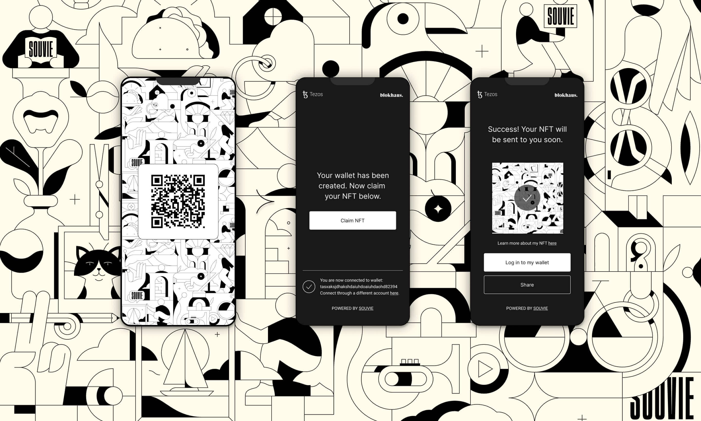 It’s a web app where patrons can scan a QR code with their smartphone, and log in with their social account. It takes just a few seconds to create a wallet, and then they're ready to claim their souvenir NFT with one click. Tens of thousands of NFTs have been claimed via the Souvie app already, by attendees at events such as SXSW, Art Basel, and We Are Developers.